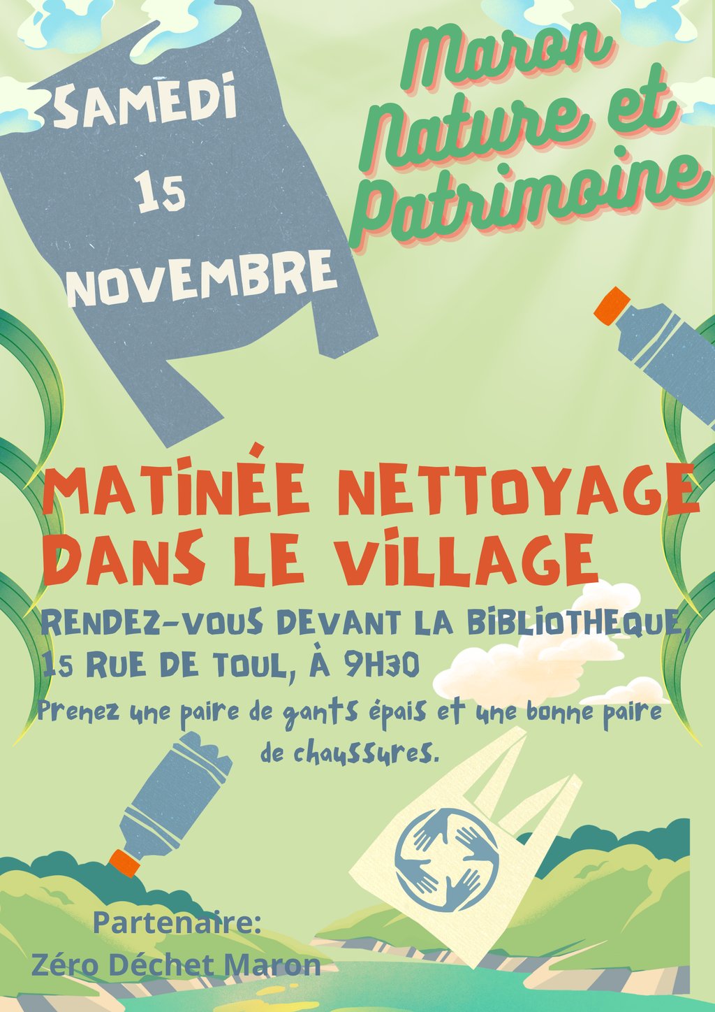 L'association Maron Nature et Patrimoine vous propose une nouvelle matinée nettoyage du village le samedi 15 novembre.